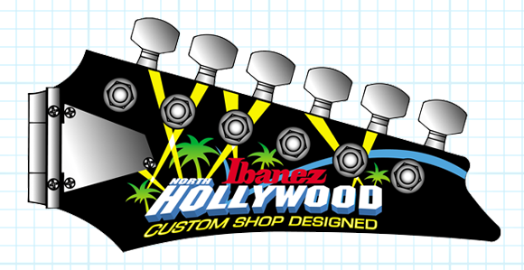 Client: Hoshino USA/Ibanez, North Hollywood, California Project: Design California themed logo that affixes on the back or prints on the head stock of custom made instruments at the North Hollywood custom Shop.
